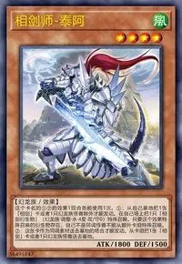 ①:从自己墓地把1张「相剑」卡或者1只幻龙族怪兽除外才能发动。在自己场上把1只「相剑衍生物」(幻龙族·调整·水·4星·攻/守0)特殊召唤。只要这个效果特殊召唤的衍生物存在,自己不是同调怪兽不能从额外卡组特殊召唤。