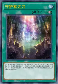 自分のモンスターゾーンに「守护者·艾托斯」が表側表示で存在し、魔力カウンターが1つ置かれた状態の「守护者之力」が装備されています。