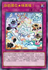 ③:把墓地的这张卡除外才能发动。从卡组把「协助摆位★味美喵!」以外的1张「味美喵」卡送去墓地。