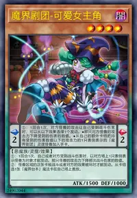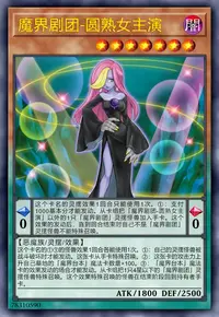 ①:支付1000基本分才能发动。从卡组把「魔界剧团-圆熟女主演」以外的1只「魔界剧团」灵摆怪兽加入手卡。这个效果的发动后,直到回合结束时自己不是「魔界剧团」灵摆怪兽不能特殊召唤。
