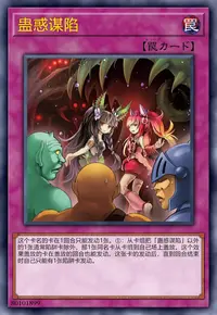 ①:从卡组把「蛊惑谋陷」以外的1张通常陷阱卡除外,那1张同名卡从卡组到自己场上盖放。这个效果盖放的卡在盖放的回合也能发动。这张卡的发动后,直到回合结束时自己只能有1张陷阱卡发动。
