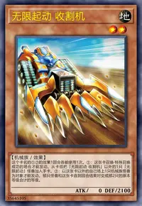 ①:这张卡召唤·特殊召唤成功的场合才能发动。从卡组把「无限起动 收割机」以外的1只「无限起动」怪兽加入手卡。