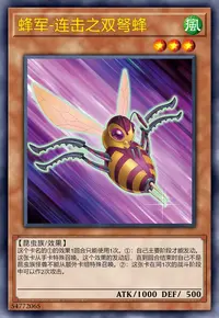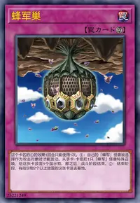 ①:自己的「蜂军」怪兽被选择作为攻击对象时才能发动。从手卡·卡组把1只「蜂军」怪兽特殊召唤,给这张卡放置1个指示物。那之后,战斗阶段结束。