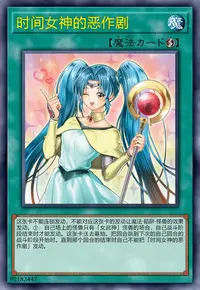 ①:自己场上的怪兽只有「女武神」怪兽的场合,自己战斗阶段结束时才能发动。这张卡送去墓地。把回合跳到下次的自己回合的战斗阶段开始时。直到那个回合的结束时自己不能把「时间女神的恶作剧」发动。