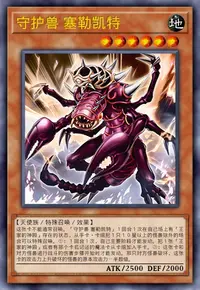这张卡不能通常召唤。「守护兽 塞勒凯特」1回合1次在自己场上有「王家的神殿」存在的状态,从手卡·卡组把1只10星以上的怪兽除外的场合可以特殊召唤。