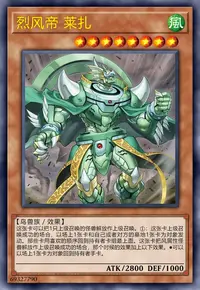 お互いの墓地にカードが存在しない状況で、「随风旅鸟×白头鹰」と「随风旅鸟×知更鸟」をリリースして「烈风帝 莱扎」をアドバンス召喚し、「烈风帝 莱扎」の効果が発動しました。
