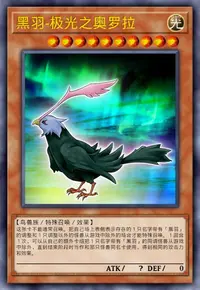 这张卡不能通常召唤。把自己场上表侧表示存在的1只名字带有「黑羽」的调整和1只调整以外的怪兽从游戏中除外的场合才能特殊召唤。1回合1次,可以从自己的额外卡组把1只名字带有「黑羽」的同调怪兽从游戏中除外,直到结束阶段时当作和那只怪兽同名卡使用,得到相同的攻击力和效果。