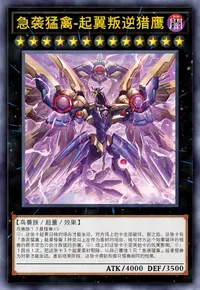 ①:这张卡超量召唤的场合才能发动。对方场上的卡全部破坏。那之后,这张卡有「急袭猛禽」超量怪兽3种类以上在作为素材的场合,给与对方这个效果破坏的怪兽的原本攻击力合计数值的伤害。
