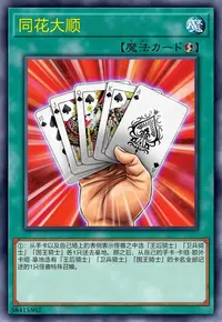 つまり、「同花大顺」の効果を適用する場合でも、そのモンスターは「王牌百搭」の効果によって特殊召喚されることになりますので、「同花大顺」の効果でのみ特殊召喚可能なモンスターである「同花大顺剑士」は特殊召喚できません。