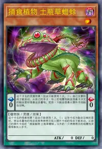 ①:这张卡成为融合召唤的素材,被送去墓地的场合或者表侧表示加入额外卡组的场合才能发动。从自己的额外卡组把「捕食植物 土瓶草蟾蜍」以外的1只表侧表示的暗属性灵摆怪兽加入手卡。