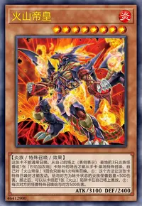 这张卡不能通常召唤。从自己的场上(表侧表示)·墓地把3只炎族怪兽或1张「烈焰加农炮」卡除外的场合才能从手卡·墓地特殊召唤。自己对「火山帝皇」1回合只能有1次特殊召唤。