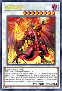 这张卡不会被卡的效果破坏。这张卡攻击的场合,伤害计算后把场上守备表示存在的怪兽全部破坏。1回合1次,可以直到结束阶段时把对方1只表侧表示怪兽的效果无效,这张卡的攻击力上升那只怪兽的攻击力数值。结束阶段时这张卡回到额外卡组,把自己墓地存在的1只「红莲魔龙」特殊召唤。