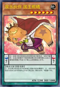 自分のバトルフェイズに、自分のモンスターゾーンに「娱乐伙伴 国王熊精」が、自分のペンデュラムゾーンに「娱乐伙伴 笑容魔术家」が存在し、「娱乐伙伴 国王熊精」は自身の②の『このカードの攻撃力は自分バトルフェイズの間、自分フィールドの「娱乐伙伴」カードの数×100アップする』効果により、攻撃力が200アップして2400になっています。