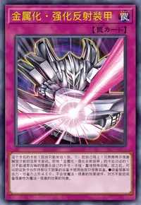 ①:把自己场上1只表侧表示怪兽解放才能把这张卡发动。把有「金属化·强化反射装甲」的卡名记述的1只不能通常召唤的怪兽从自己的手卡·卡组·墓地特殊召唤。那之后,可以把这张卡当作持有以下效果的装备卡使用给那只怪兽装备。