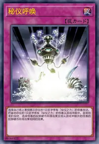 ①:把这张卡从手卡丢弃才能发动。这个回合,在自己场上有「秘仪之力」怪兽召唤·反转召唤·特殊召唤时对方不能把效果发动。