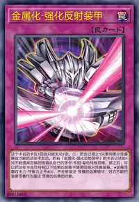 ①:把自己场上1只表侧表示怪兽解放才能把这张卡发动。把有「金属化·强化反射装甲」的卡名记述的1只不能通常召唤的怪兽从自己的手卡·卡组·墓地特殊召唤。那之后,可以把这张卡当作持有以下效果的装备卡使用给那只怪兽装备。