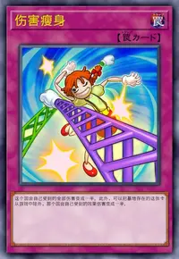 質問の状況の場合、攻撃力4000の「青眼混沌极龙」で、守備力1500の「隆隆隆石人」を攻撃していますので、その差分の2500の戦闘ダメージが「青眼混沌极龙」の『②:このカードが守備表示モンスターを攻撃した場合、その守備力を攻撃力が超えた分の倍の数値だけ戦闘ダメージを与える』モンスター効果によって倍になりますが、「伤害瘦身」の効果によって、結果的に相手が受けるダメージは半分になります。