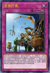 ②:把魔法与陷阱区域的表侧表示的这张卡送去墓地,以自己场上1只「发条」超量怪兽为对象才能发动。比那只自己怪兽阶级高1阶的1只「发条」超量怪兽在那上面重叠当作超量召唤从额外卡组特殊召唤。