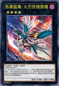 ①:1回合1次,自己主要阶段才能发动。给与对方600伤害。这个效果的发动后,直到回合结束时自己不能把「急袭猛禽」怪兽以外的怪兽的效果发动。