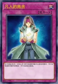 また、「凡人的施舍」の効果処理を行う時に「王宫的铁壁」の効果が適用されている場合、手札に通常モンスターが存在するのであれば、相手プレイヤーに通常モンスターが存在する事を確認させるのみで、効果処理を終えます。(手札の通常モンスターは、除外されません。)