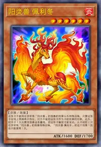 这张卡不能用名字带有「阳炎兽」的怪兽的效果以外特殊召唤。只要这张卡在场上表侧表示存在,对方不能把这张卡作为卡的效果的对象。此外,把手卡1只炎属性怪兽送去墓地,把这张卡解放才能发动。从卡组把2只名字带有「阳炎兽」的怪兽特殊召唤。「阳炎兽 佩利冬」的这个效果1回合只能使用1次。