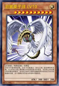 这个卡名在规则上也当作「元素英雄」卡、「至爱」卡使用。这张卡不能通常召唤。「羽翼栗子球 LV6」1回合1次在把自己的手卡·场上(表侧表示)·墓地1只「元素英雄」融合怪兽或「羽翼栗子球」除外的场合才能从手卡·墓地特殊召唤。