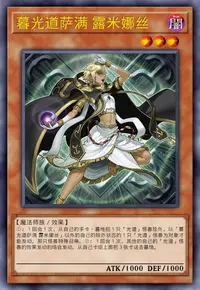 ①:1回合1次,从自己的手卡·墓地把1只「光道」怪兽除外,以「暮光道萨满 露米娜丝」以外的自己的除外状态的1只「光道」怪兽为对象才能发动。那只怪兽特殊召唤。