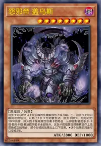 相手の発動した「怨邪帝 盖乌斯」の『①:このカードがアドバンス召喚に成功した場合、フィールドのカード1枚を対象として発動する。そのカードを除外し、相手に1000ダメージを与える』モンスター効果によって、自分フィールドの「入魔双蛇杖使」が除外されました。
