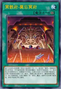 ①:自己·对方的主要阶段,自己场上有「冥骸合龙-莫忘冥地王灵」存在的场合,把这张卡从手卡丢弃才能发动。这个回合中,对方不能把自己场上的「莫忘」怪兽作为效果的对象。