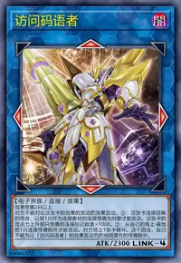 ②:从自己的场上·墓地把1只连接怪兽除外才能发动。对方场上1张卡破坏。这个回合,自己不能为让「访问码语者」的效果发动而把相同属性的怪兽除外。