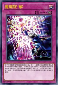 ①:「魔键」仪式怪兽或者从额外卡组特殊召唤的「魔键」怪兽在自己场上存在,对方把魔法·陷阱卡发动时才能发动。那个发动无效并破坏。那之后,可以宣言1个属性。那个场合,直到回合结束时对方场上的全部表侧表示怪兽变成宣言的属性。