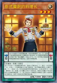 ①:只要自己场上有「新式魔厨」怪兽卡存在,对方场上的表侧表示怪兽变成攻击表示。