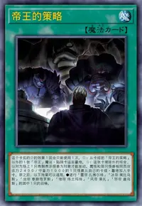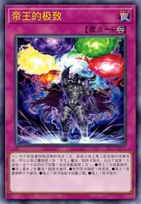 ①:对方把怪兽特殊召唤的场合1次,若自己场上有上级召唤的怪兽存在,可以从自己墓地把1张「帝王」魔法·陷阱卡除外,从以下选择1个发动(这个卡名的以下效果1回合各能选择1次)。