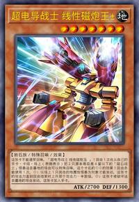 这张卡不能通常召唤。「超电导战士 线性磁炮王±」1回合1次在从自己的手卡·卡组·场上(表侧表示)把2只原本等级是4星以下的「磁石战士」怪兽送去墓地的场合可以特殊召唤。这个卡名的①②的效果1回合各能使用1次。