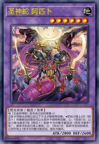 ①:这张卡发动后变成通常怪兽(爬虫类族·地·4星·攻1600/守1800)在怪兽区域特殊召唤(也当作陷阱卡使用)。那之后,可以从卡组把「阿匹卜之蛇神」以外的1张「阿匹卜」陷阱卡在自己场上盖放。这个效果盖放的卡在盖放的回合也能发动。