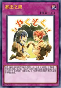 ①:从手卡·卡组把1只「御巫」怪兽特殊召唤。那之后,可以把1张那只怪兽可以装备的装备魔法卡从自己的手卡·墓地给那只怪兽装备。这个效果特殊召唤的怪兽从场上离开的场合除外。