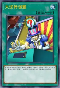将自己手卡和场上的卡全部送去墓地。猜自己卡组最上面1张卡的种类(魔法/陷阱/怪兽),若猜对,则将自己与对方的基本分值互换。