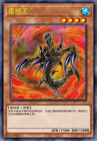 这张卡被战斗破坏送去墓地时,从自己墓地里特殊召唤1只「毒根王」以外的植物族怪兽上场。