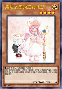 「白魔导士 绒儿」「黑魔导师 库兰」才能装备。装备怪兽攻击力上升800。装备怪兽因战斗破坏5星以上的怪兽的回合,可以把装备怪兽和这张卡作为祭品,「白魔导士 绒儿」对应「魔法之国的王女-绒儿」,「黑魔导师 库兰」对应「魔法之国的王女-库兰」从手卡·卡组特殊召唤1只。