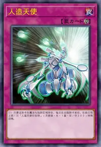 ①:只要这张卡在魔法与陷阱区域存在,每次反击陷阱卡发动,在自己场上把1只「人造天使衍生物」(天使族·光·1星·攻/守300)特殊召唤。