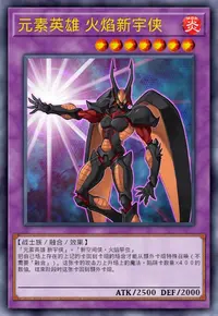 「元素英雄 新宇侠」以及用「元素英雄 新宇侠」作为融合素材的融合怪兽的攻击力上升500。用「元素英雄 新宇侠」作为融合素材的融合怪兽在结束阶段时可以不发动回到卡组效果。