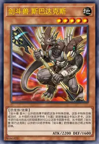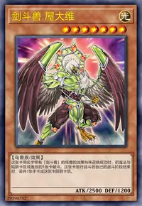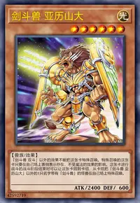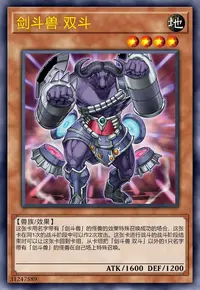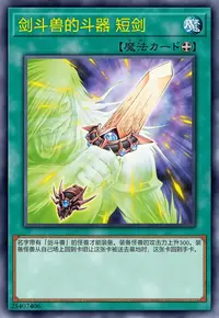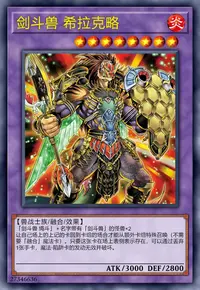 这张卡用名字带有「剑斗兽」的怪兽的效果特殊召唤成功时,把魔法与陷阱卡区域盖放的1张卡破坏。这张卡进行战斗的自己的战斗阶段结束时,丢弃1张手卡或这张卡回到卡组。