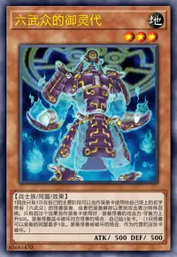 ①:以自己墓地2只「六武众」怪兽为对象才能发动。那些怪兽攻击表示特殊召唤。这个效果特殊召唤的怪兽在这个回合的结束阶段破坏,自己受到破坏的怪兽的攻击力合计数值的伤害。
