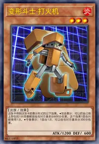 ●攻击表示:这张卡被战斗破坏时,可以把自己的手卡·墓地存在的「变形斗士·照相机」以外的1只名字带有「变形斗士」的4星以下的怪兽在自己场上特殊召唤。