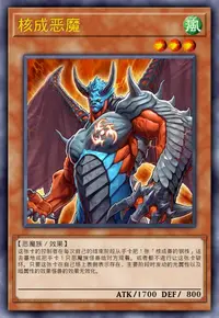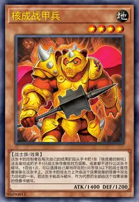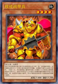 这张卡的控制者在每次自己的结束阶段从手卡把1张「核成兽的钢核」送去墓地或把手卡1只战士族怪兽给对方观看。或者都不进行让这张卡破坏。1回合1次,可以选择自己墓地存在的1只等级3以下的战士族怪兽装备在这张卡上。这张卡的攻击力上升由这个效果装备的怪兽卡攻击力总和的一半。若这张卡被战斗破坏,作为代替把全部由这个效果装备的怪兽卡破坏。