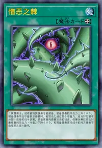①:把这张卡解放才能发动。给与对方300伤害,可以从卡组把最多2只「邪恶之棘」攻击表示特殊召唤。这个效果特殊召唤的怪兽不能把效果发动。