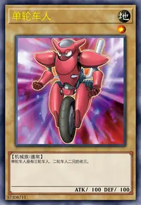 这张卡被战斗破坏送去墓地时,可以从自己的手卡或者卡组把1只「单轮车人」在自己场上特殊召唤。