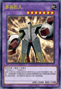 自己场上有「大块石人」表侧表示存在的场合这张卡召唤·反转召唤·特殊召唤成功时,可以从自己卡组把1只「小块石人」特殊召唤。这个效果特殊召唤的怪兽的效果无效化。