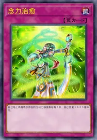 自己场上表侧表示存在的念动力族怪兽被对方怪兽的攻击破坏的场合才能发动。那个时候进行攻击的1只对方怪兽破坏,自己基本分回复那个攻击力的数值。