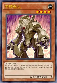 自己场上有「大块石人」表侧表示存在的场合这张卡召唤·反转召唤·特殊召唤成功时,可以从自己卡组把1只「中块石人」特殊召唤。这个效果特殊召唤的怪兽的效果无效化。